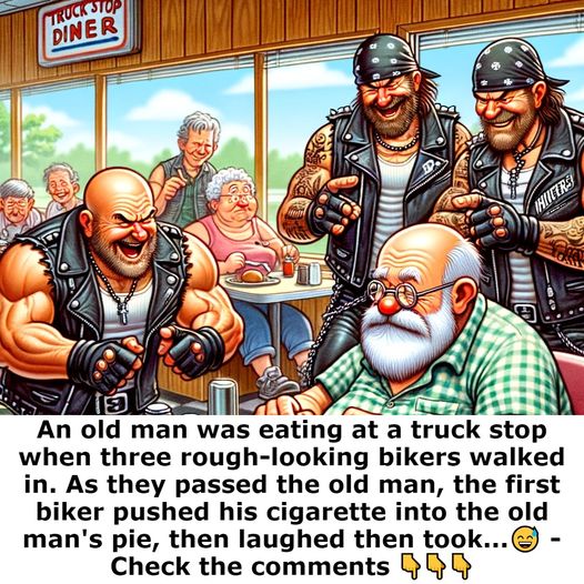 Three scruffy-looking bikers entered the truck stop where an elderly man was dining.