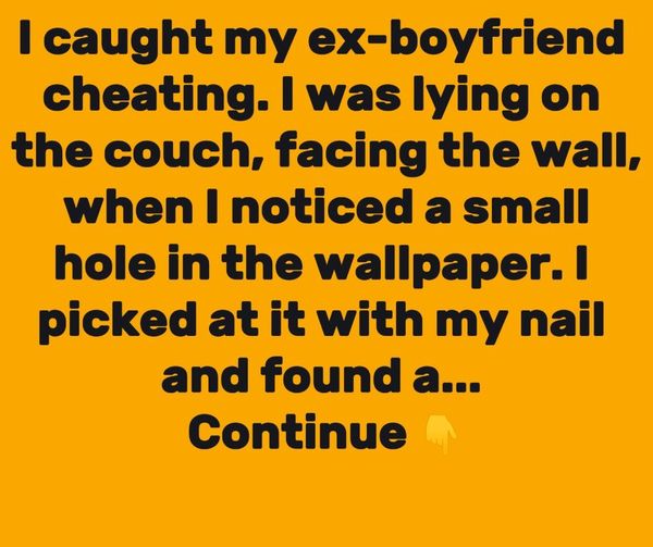 I caught my ex-boyfriend cheating. I was lying on the couch facing the wall when I noticed a small hole in the wallpaper. I picked at it with my nail and found a SIM card. It had chats with his other girlfriend. I broke up with him.