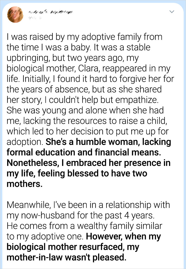Weddings are usually joyful, but they can also cause unexpected conflicts, often with mothers-in-law. Recently, a newlywed named Lara faced a very upsetting situation at her wedding. Her MIL didn’t want her mom to come, so Lara had to leave her own mother out of the celebration.