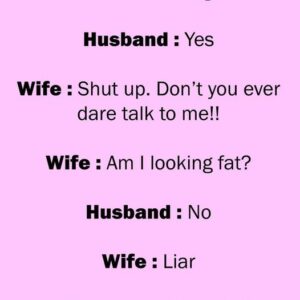 This is funny Wife : Am I looking fat? Husband : Yes Wife : Shut up. Don’t you ever dare talk to me!! Wife : Am I…