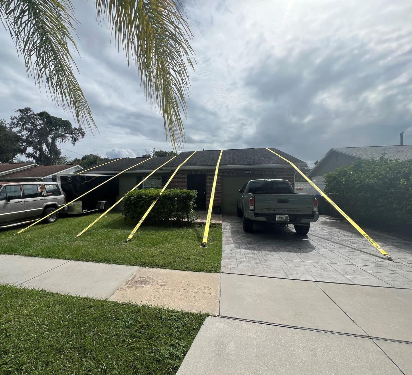 In a viral image shared by Spectrum Bay News 9, Pedro fastened six large yellow straps from the roof of his one-story house to the ground, prompting both humor and admiration online.