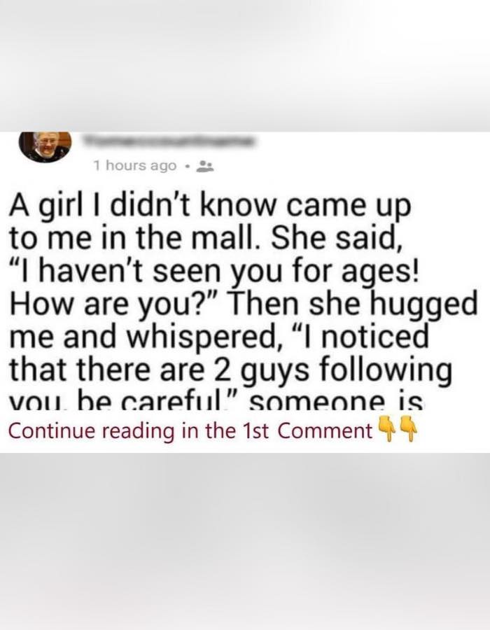 In the center of the bustling mall, amidst the monotonous hum of shoppers and ringing cash registers, my usual shopping trip turned into a compelling tale of mystery. A strange figure, a girl with an air of mystery, approached me unexpectedly. With an odd familiarity, she embraced me in an unexpected embrace and murmured urgently of impending danger.