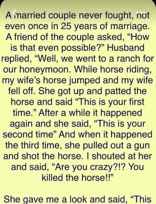 And when it happened the third time, she pulled out a gun and shot the horse.