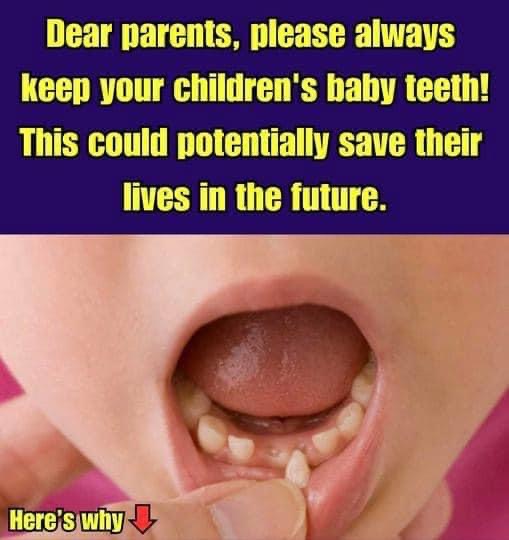 If your children are still young, you might want to hang on to all of your kids’ lost baby teeth. Scientists and doctors are encouraging parents to hang on to their kids’ baby teeth, and the reasons why make you surprised.