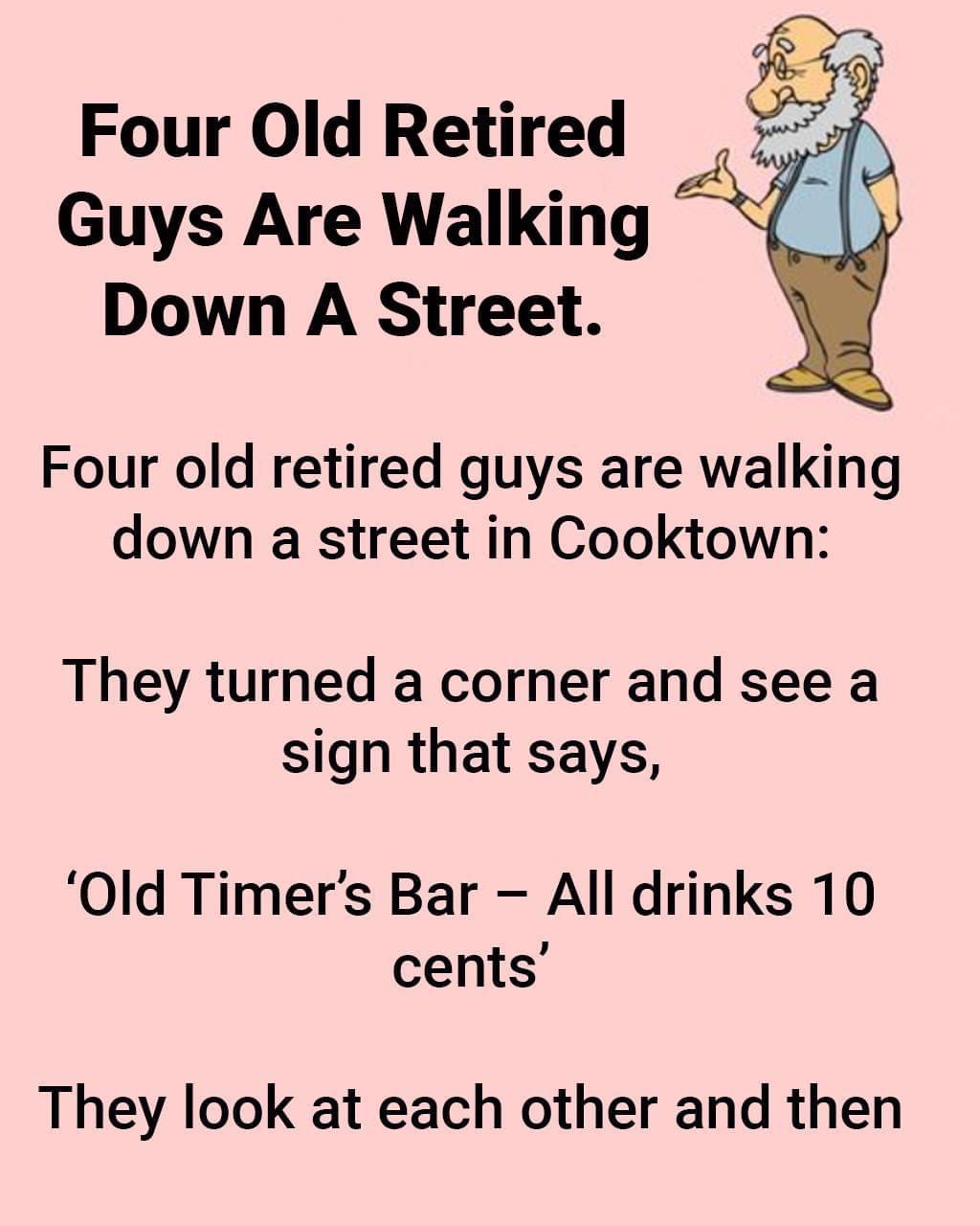 Four Old Retired Guys Are Walking Down A Street.