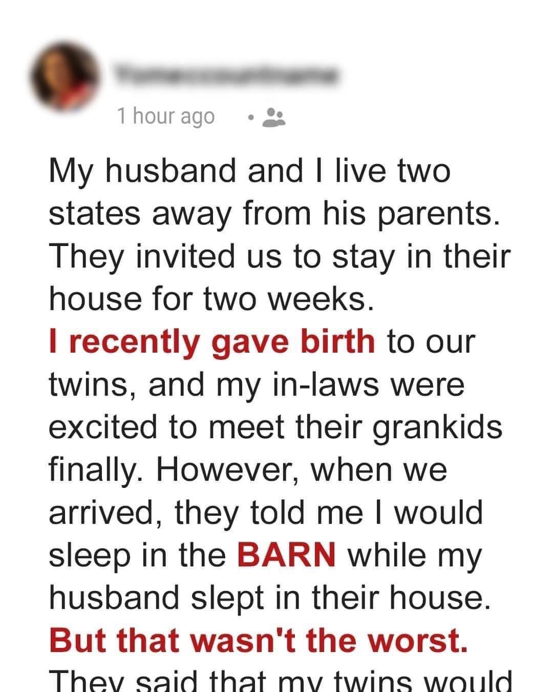 Now, imagine all of that going completely wrong. Let me set the stage for you: twins, a creepy barn, and in-laws who somehow managed to make me feel more like the hired help than part of the family.