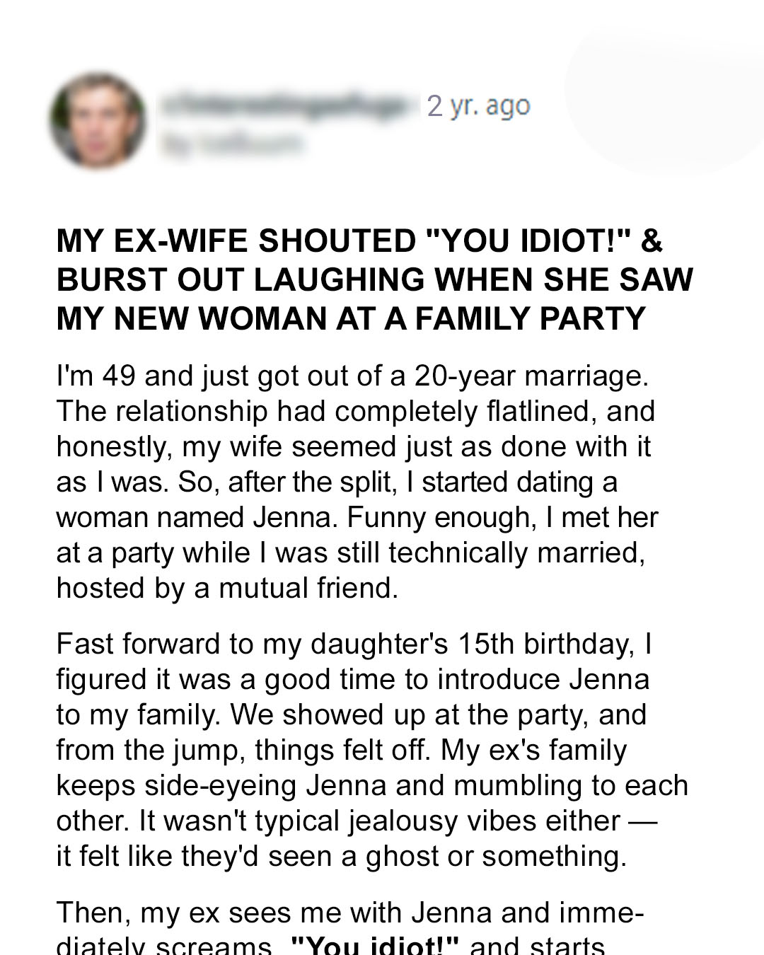 We showed up at the party, and from the jump, things felt off. My ex’s family keeps side-eyeing Jenna and mumbling to each other. It wasn’t typical jealousy vibes either it felt like they’d seen a ghost or something.
