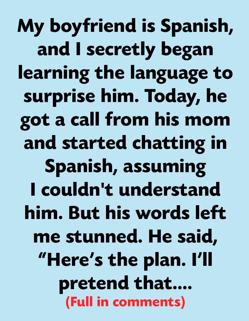 My boyfriend is Spanish, and I secretly began learning the language to surprise him. Today, he got a call from his mom and started chatting in Spanish, assuming I couldn’t understand him. But his words left me stunned.