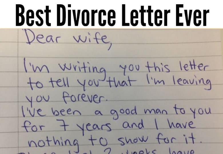 I’m writing you this letter to tell you that I’m leaving you forever. I’ve been a good man to you for 7 years & I have nothing to show for it. These last 2 weeks have been hell.