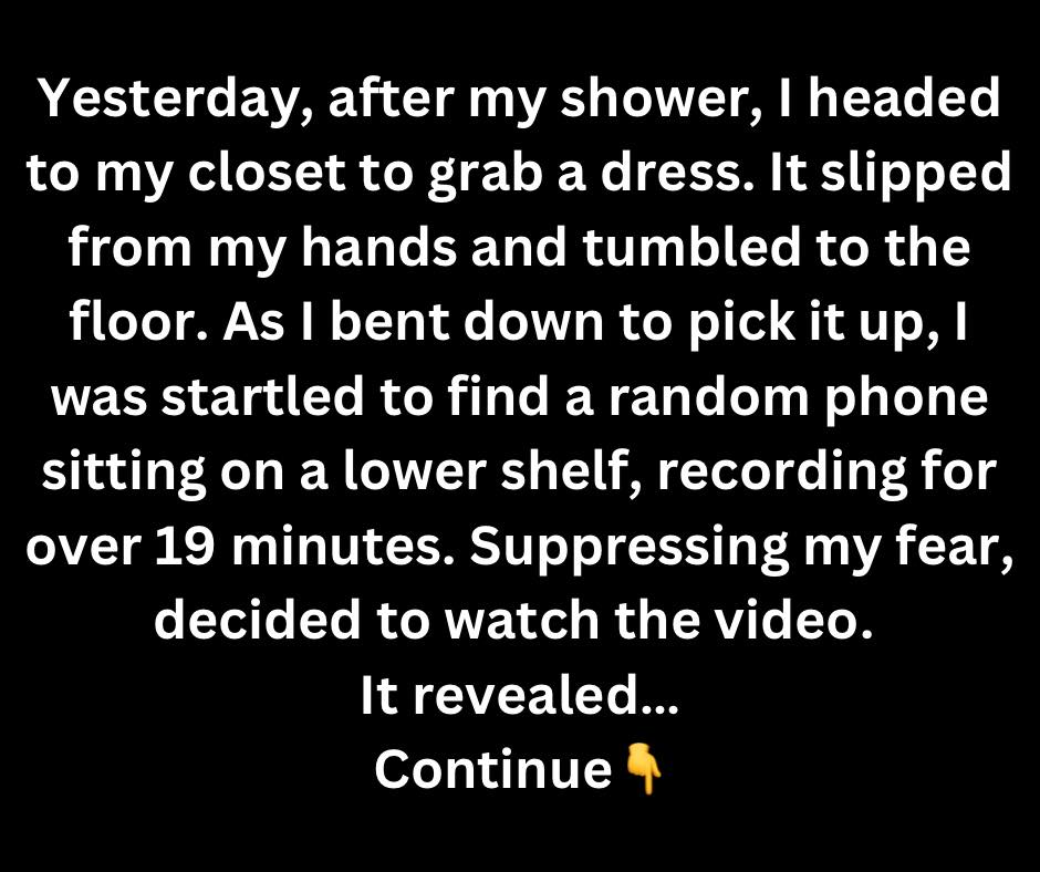 1 (34F) have been happily married to my husband James (37M) for a year. He has a teenage son from a previous marriage, whom I only met a month ago when he moved in with us for the summer. His son had been living with his mom in another state for the past two years, which is why I hadn’t met him before. Now, to provide context, I always change in my walk-in closet. Yesterday, after my shower, I headed to my closet to grab a dress. It slipped from my hands and tumbled to the floor. As I bent down to pick it up, I was startled to find a random phone sitting on a lower shelf, especially when I saw it had been recording for over 19 minutes. Since I had only just stepped into the closet after my shower, it was clear that someone had carefully placed the device there while I was in the bathroom. In a panicked state,