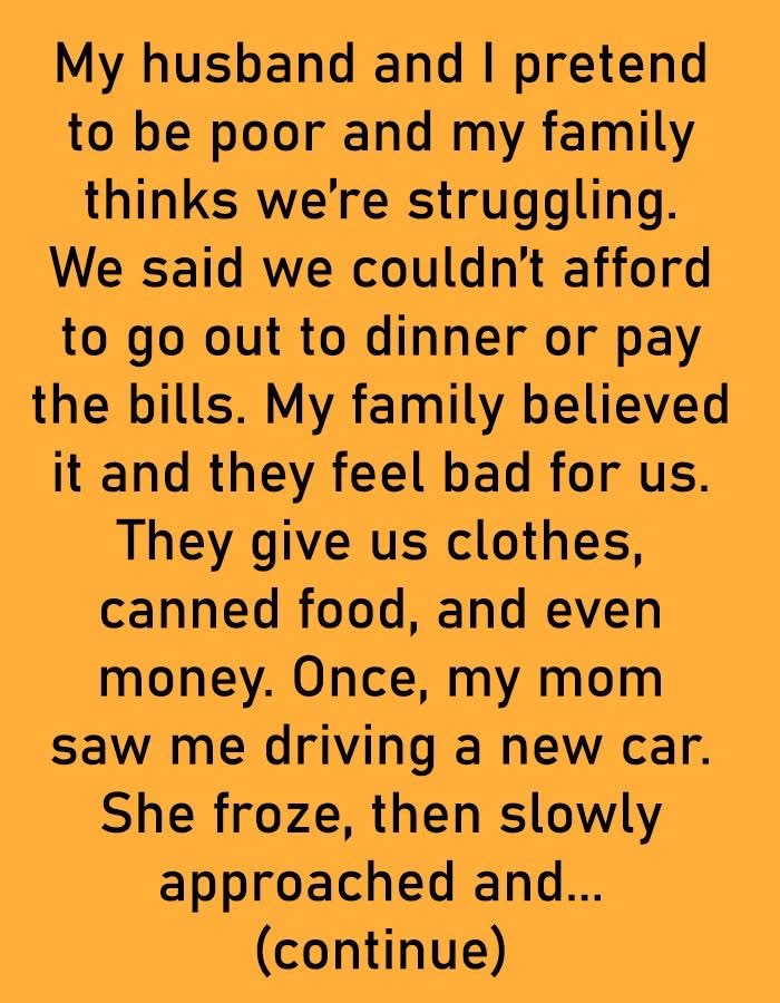 It started with small things and turned into a full-on act. We said we couldn’t afford to go out to dinner or pay the bills. My family believed it and they feel bad for us. They give us clothes, canned food, and even money.