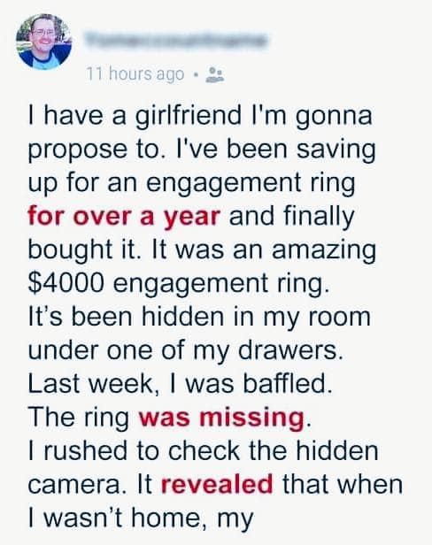 The situation took a drastic turn when the man’s brother and his family moved into his home due to financial difficulties. At first, he didn’t mind their presence, but everything changed when his engagement ring went missing. Determined to safeguard his belongings, he thought he had hidden the ring in a secure spot.