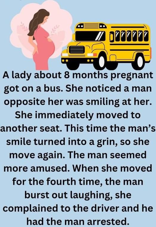 A pregnant woman saw a man smiling at her on the bus…