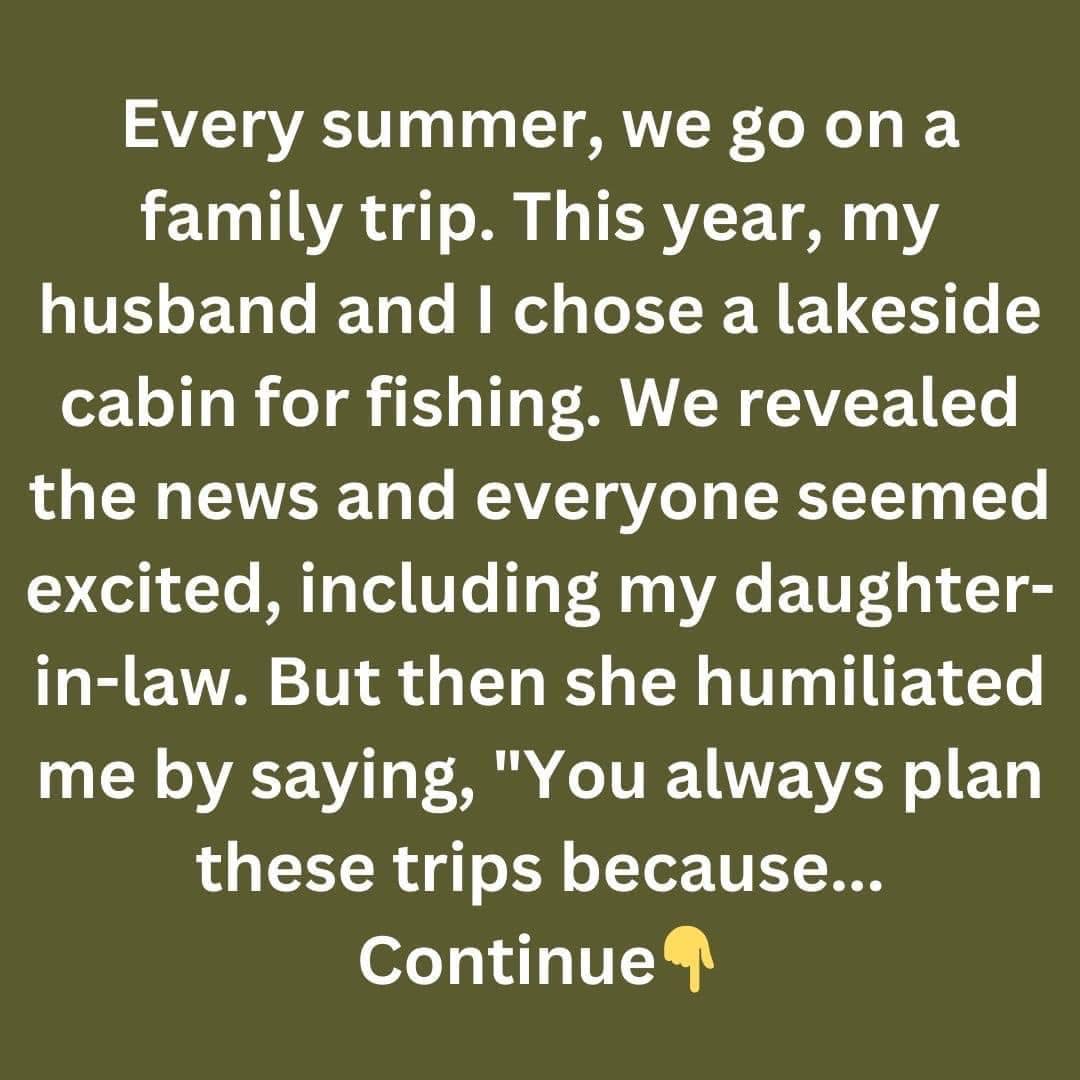 This year, I made the tough decision to exclude my daughter-in-law from our family vacation. While we’ve tried to get along since she married my son, her sarcastic remarks and dismissive attitude were becoming too much. At a family dinner, she insulted me for planning the trip, claiming I was controlling. After that, I decided I couldn’t spend a week with someone who didn’t respect me.