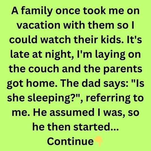 It’s late at night, the kids are sleeping, I’m laying on the couch and the parents get back.