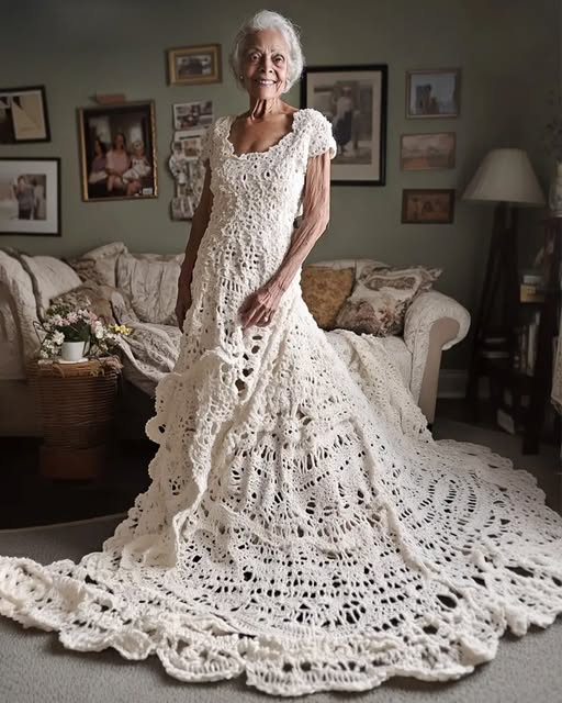 Not just any dress. It was entirely hand-crocheted, every loop and knot meticulously crafted by him. My breath caught as I held it up, the intricate lace patterns shimmering in the sunlight. It was delicate yet sturdy, elegant yet simple—just like the love we’ve shared over the years.