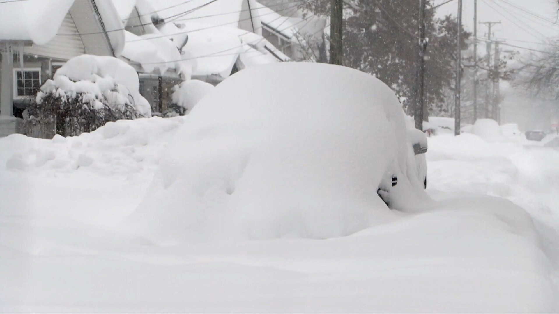 Heavy snowfall with accumulations of six to twelve inches. Gusty winds may create near-blizzard conditions in some areas.