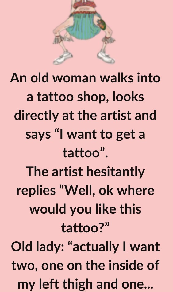 Old lady: “actually I want two, one on the inside of my left thigh and one and the inside of my right thigh”