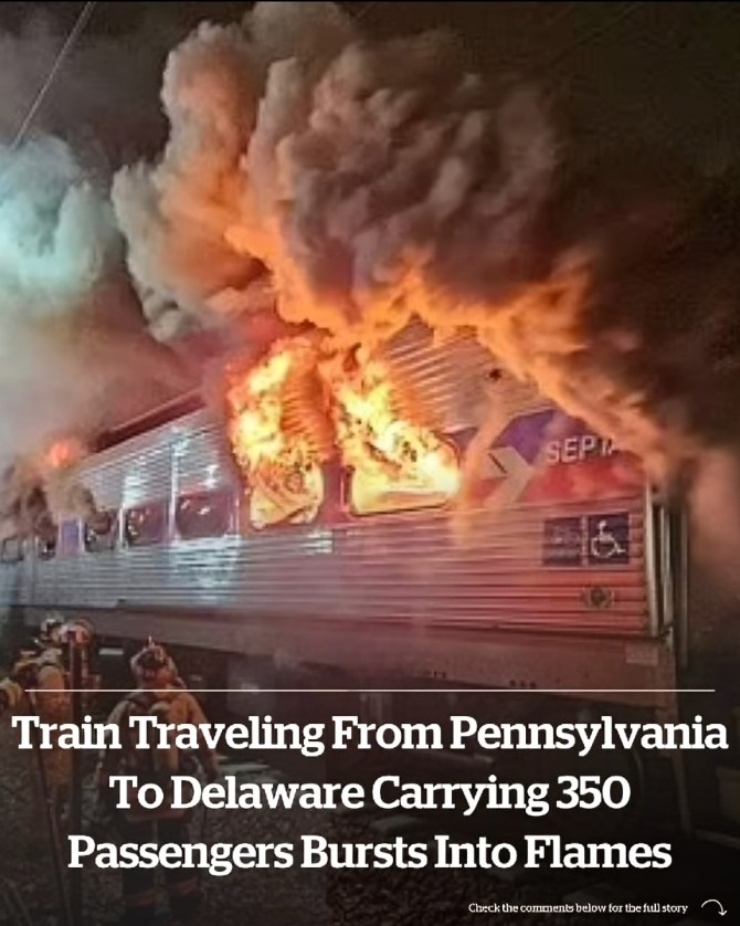 A train that was traveling from Pennsylvania to Delaware burst into flames as 350 people were onboard.