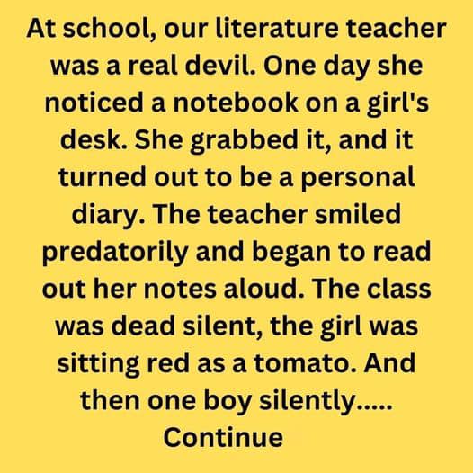 At school, our literature teacher was a real devil. One day she noticed a notebook on a girl’s desk. She grabbed it, and it turned out to be a personal diary.