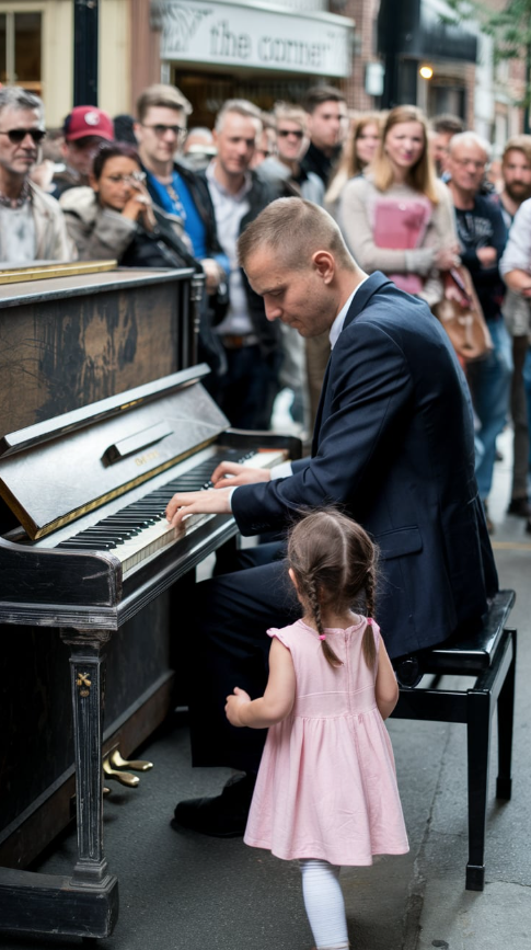 The moment was nothing short of magical. Three-year-old Angelica stood before a street piano in Los Angeles, her tiny voice carrying a song no one expected. As she sang My Heart Will Go On, time seemed to stop. The usual city noise faded into silence, replaced by the raw emotion in her delicate, heartfelt notes.