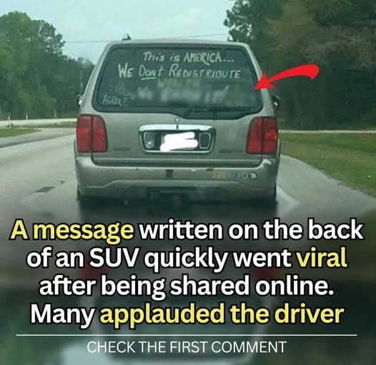 After being uploaded online, a phrase scrawled on the rear of an SUV swiftly gained popularity. After a Reddit user posted a picture of the driver on the platform, several people praised the driver for having the message visible on the back of the SUV.