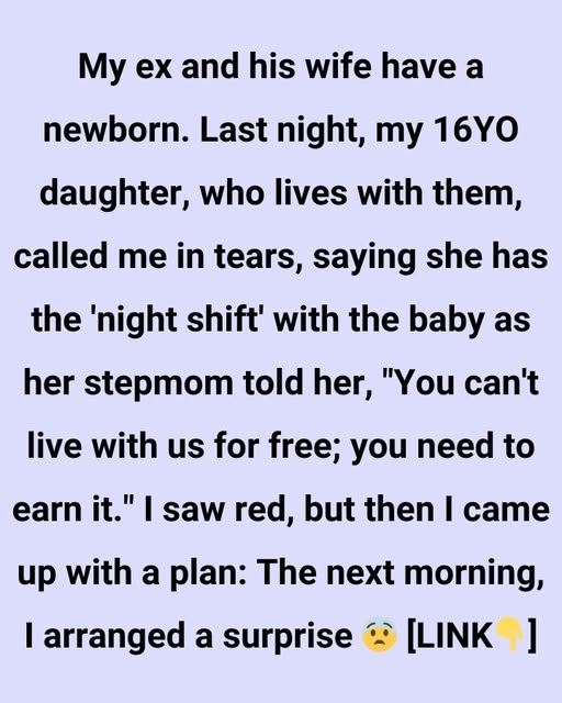 My ex-husband and his wife recently welcomed a newborn. Last night, my 16-year-old daughter, who lives with them, called me in tears. She told me that she had been assigned the “night shift” with the baby because her stepmother told her, “You can’t live with us for free; you need to earn it.”