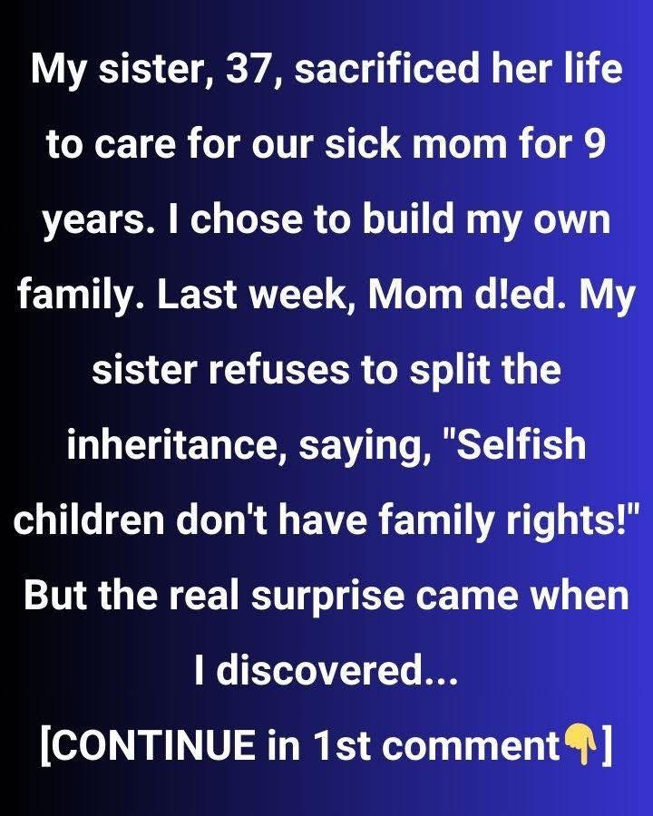 Hi, I’m Wendy, 35, and a mother of twin 8-year-old boys. My sister Cynthia, 37, spent years caring for our sick mother, while I focused on raising my family. After our mother passed away last week, I was shocked to learn she had transferred all her assets—$85,000 in savings, land, and our family home—solely to Cynthia.