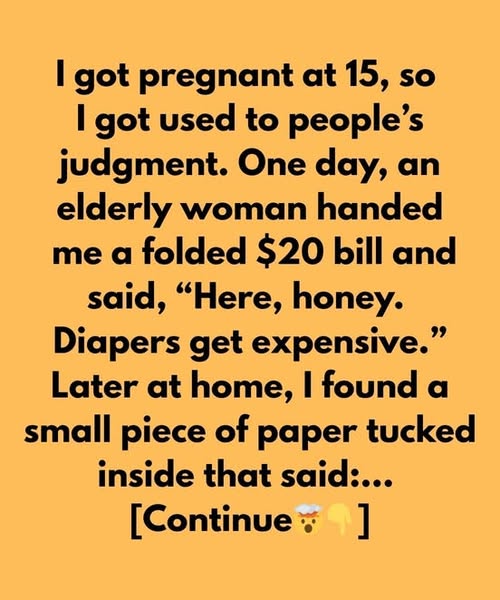At 15 and pregnant, I got used to judgment. One day, an elderly woman handed me $20 for diapers. At home, I found a note inside: “You’re stronger than you think.” Years later, I learned she was a neighbor my mom once helped. She remembered.