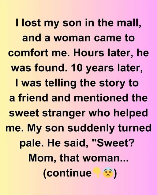 My son suddenly turned pale. He looked at me and said, “Sweet? Mom, that’s not what happened. That woman was actually the one who took me. She and a man carried me to the parking lot and kept me in their car for a while. I remember them arguing.” He continued, “She came back to distract you, but it was her boyfriend who changed his mind and let me go.”