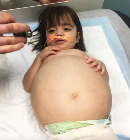 Maddy Rbykin’s condition had caused her stomach to swell and for the first 18 months of her life she was in and out of hospital.