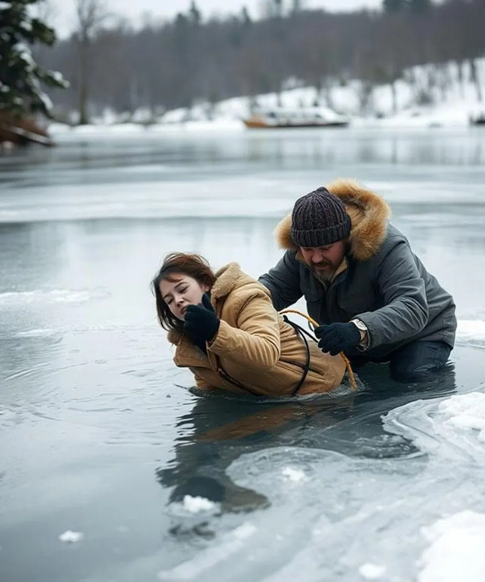 As they ran towards the river, they heard a piercing scream. Veronica was struggling in the ice hole, trying to get out, but to no avail. Timur acted quickly: he grabbed a large stick, climbed down onto the thin ice and began to carefully move towards the girl, handing her the improvised rescue device. Veronica grabbed the stick with all her might, and soon Timur was able to pull her to a relatively safe area. He quickly took off his jacket, wrapped the girl, who was shivering from the cold, in it and, supporting her in his arms, headed towards the ambulance that was waiting nearby.