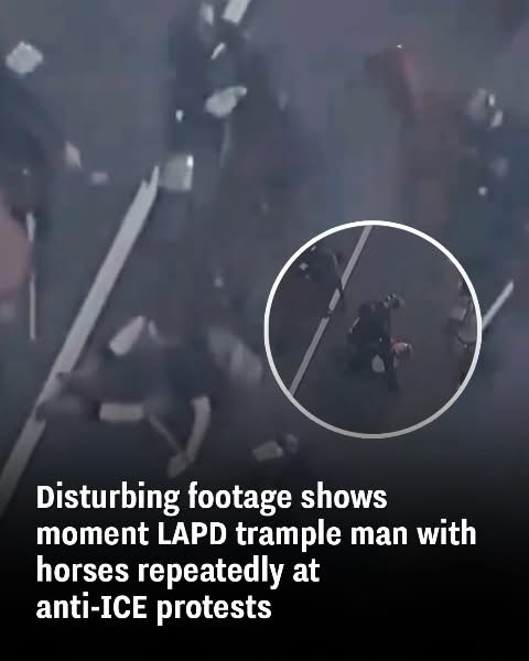 During a protest against ICE raids in Los Angeles on Friday (June 6), a man was repeatedly trampled by police horses in a disturbing scene caught on video. The footage, widely shared on social media and aired on national TV, shows the man—wearing a backpack—lying in the street as mounted officers moved through. He was kicked by one horse, stomped by another, and struck on the head with a baton-like object. Though he managed to stand and begin retreating, an officer forced him back to the ground.