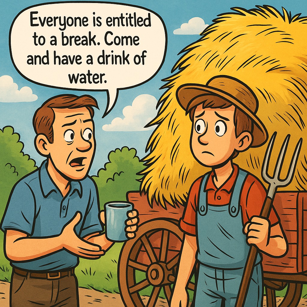 “Everyone is entitled to a break,” the gentleman said. “Come and have a drink of water.”