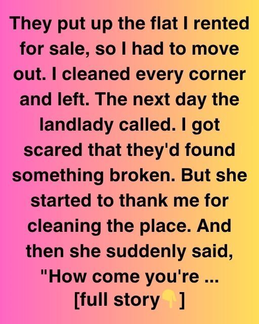 My heart sank. I was sure they’d found something broken—a scratch on the floorboards, a crack I hadn’t noticed. My stomach twisted as I picked up.But to my surprise, her tone was cheerful. She started thanking me, over and over, for how clean the place was. She said she hadn’t seen a tenant leave it in such good condition in years. I let out a nervous laugh, finally starting to relax.And then, after a pause, she said something that made my heart skip.