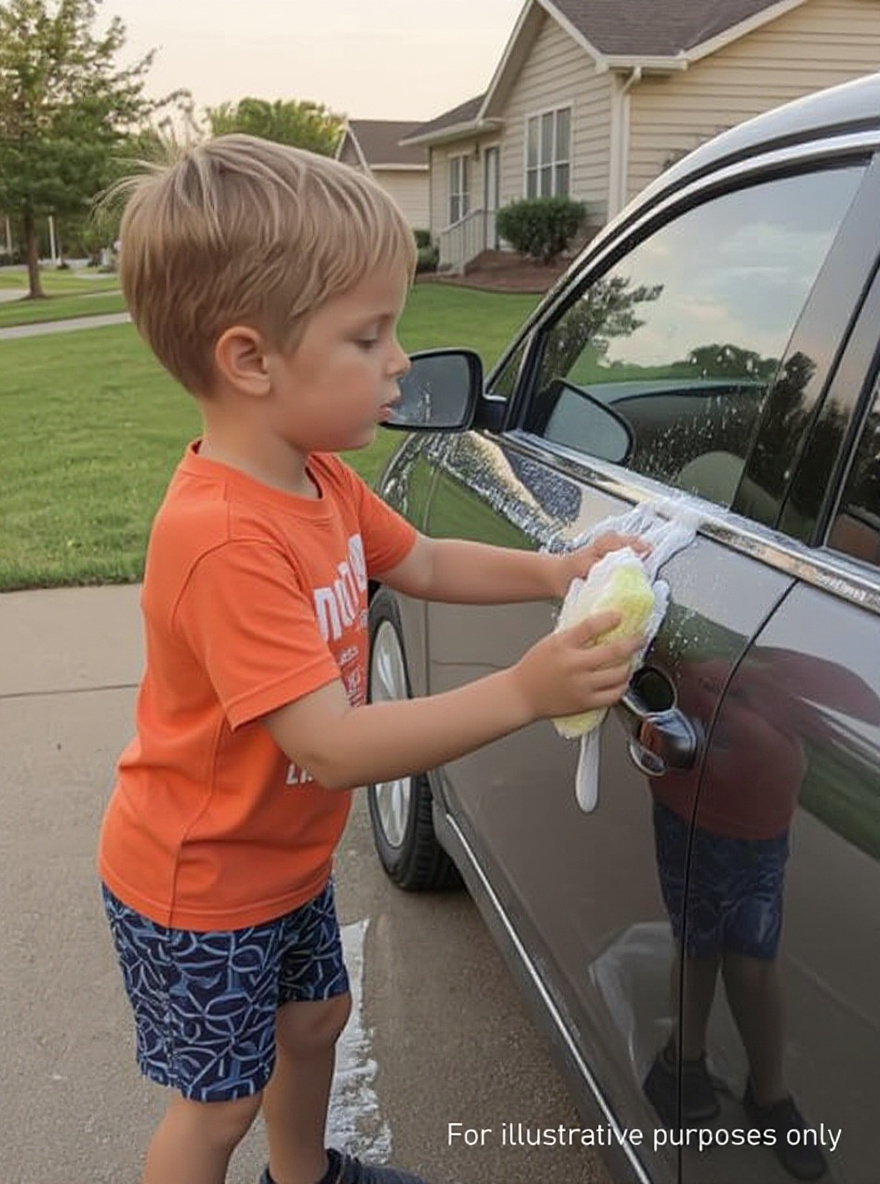 Owen looked so sweet as he marched outside, clutching a small cloth like a hero’s tool. For the first thirty minutes, we were a solid team. He scrubbed the tires with the focus of a little trooper, and I tackled the front seats, pulling out old receipts and gooey candy wrappers.