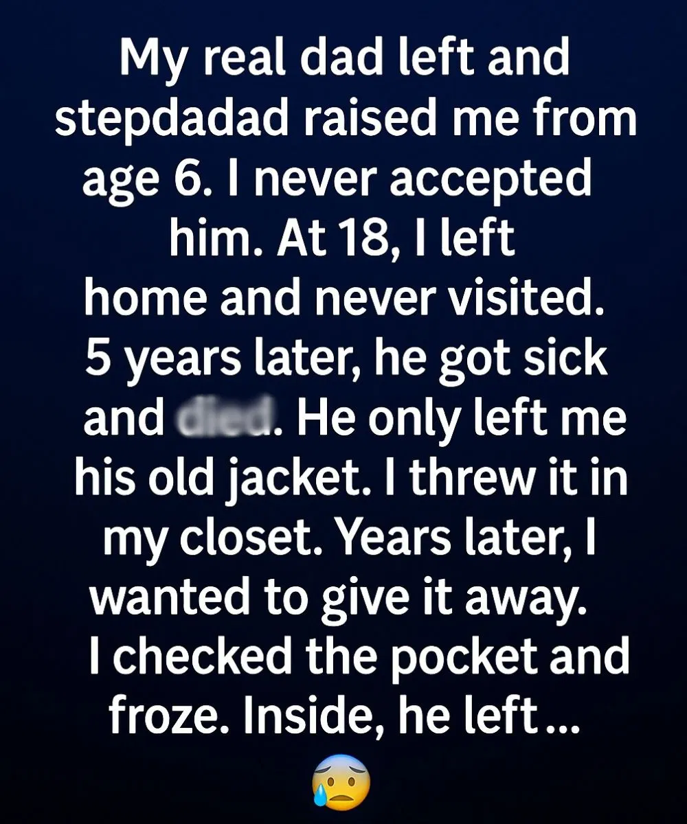 At the funeral, my mom placed a faded, well-worn jacket in my hands and muttered, “This is what he wanted you to have.” To me, it felt like a cruel reminder of the love I had pushed away. I shoved it in the back of my closet and tried not to think about it.