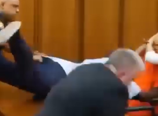 Terry then paused and turned to look behind him at Madison, who was sitting behind the defense table, before running towards the convicted killer and lunging over the table at him.