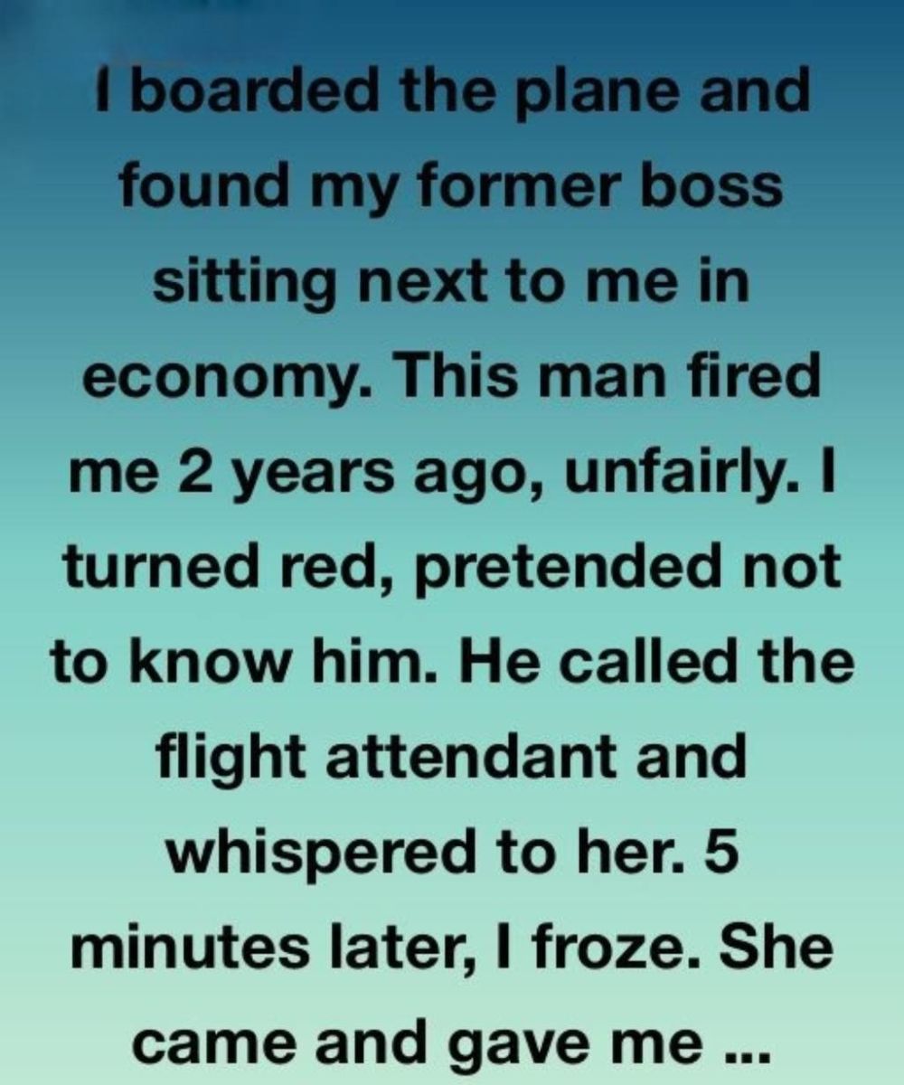 But the universe had other plans. As I made my way down the aisle, my heart stumbled — there in my assigned seat sat my old boss, the one who had fired me two years earlier. I froze in place, praying he wouldn’t recognize me.