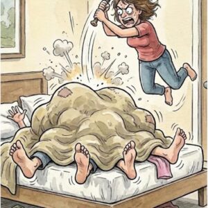 Wife comes home late at night and quietly opens the door to her bedroom. From under the blanket she notices four legs instead of two! She reaches…