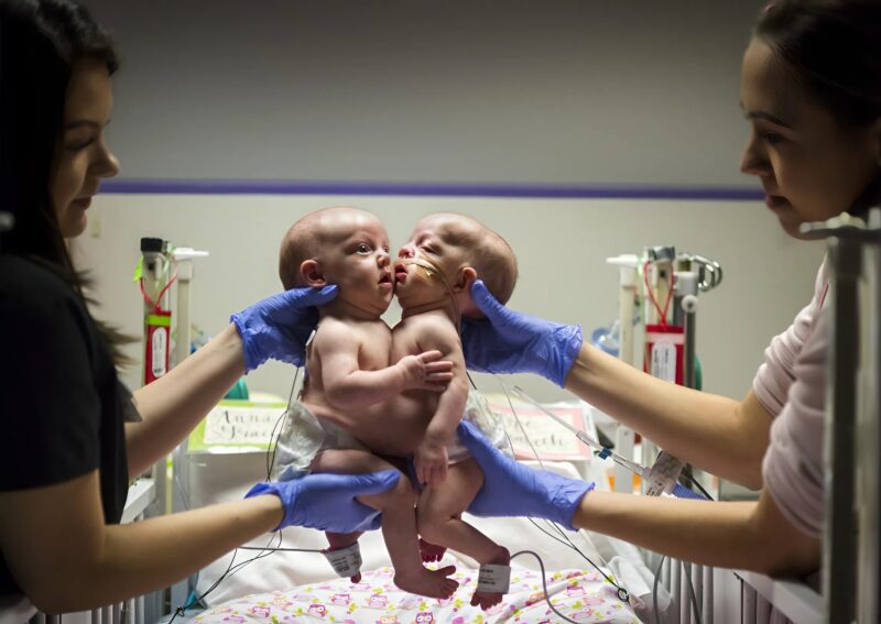 Anna and Hope Richards were born conjoined at the chest and abdomen, sharing a diaphragm, liver, and a major blood vessel. Because of this, they struggled to move or lie comfortably. After months of preparation, a team of 75 doctors performed a complex seven-hour surgery when the girls were just over one year old. The operation succeeded, separating them safely. Today Anna and Hope are healthy, growing, playing, and living as two independent sisters. Their lives began with courage and medical dedication and love daily.