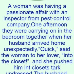 A woman was having a passionate affair with an inspector from pest-control company.One afternoon they were carrying on in the bedroom together when her husband arrived home…